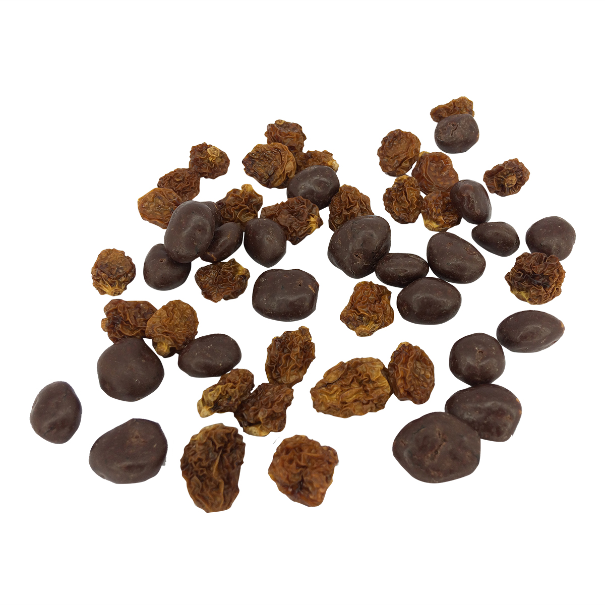 Physalis peruviana Also known as goldenberries are a small tart berry with a unique taste profile. Especially when mixed with chocolate we encourage you to enjoy our organic Peruvian dehydrated goldenberries fully covered in your choice of chocolate sweetened with your choice of organic panela, organic coconut sugar, or organic yacon syrup